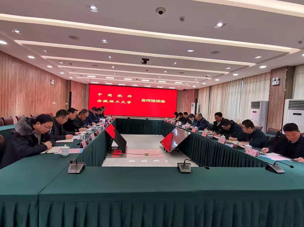 2月24日上午,中国软件与技术服务股份有限公司高级副总经理杨春平、吴晶莅临安徽理工大学开展战略合作事宜洽谈。校党委常委、副校长郑明东、梁立昌出席洽谈会。