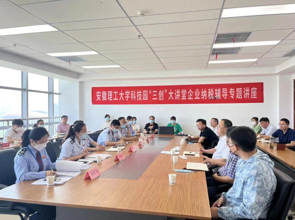 6月2日,我校大学科技园“三创”大讲堂第三讲在双创中心顺利举行,会议由大学科技园总经理黄绍服主持。本期授课主题是“企业纳税辅导”,特邀请国家税务总局淮南市税务局第二税务分局局长张宏担任主讲,张维民、李琦等有关税务专家现场为科技园企业现场答疑和辅导。入园企业负责人及代表参加了讲座。