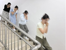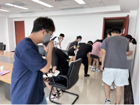 李志首先介绍了生产办公场所中存在的安全隐患及正确处理方式,普及了消防安全常识、火灾种类及灭火器类型。结合近年来多起消防安全事故,重点强调了火场自救和逃生的常见误区及正确方法。最后在教官的指导下,带领大家实地演练了突发火灾时正确的逃生方式。