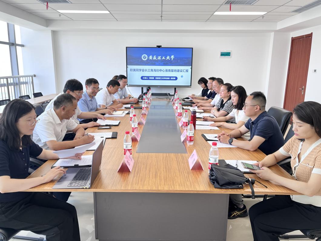 大科技园负责人汇报了欧美同学会长三角海创中心淮南基地建设方案。市委统战部副部长、市侨办主任徐可介绍了为申请淮南基地所做的前期工作。许松亭秘书长表示淮南基地的建设离不开各级领导的重视及各项政策支持,要发挥依托主体自身优势,完善载体条件,吸引高质量人才项目入驻。