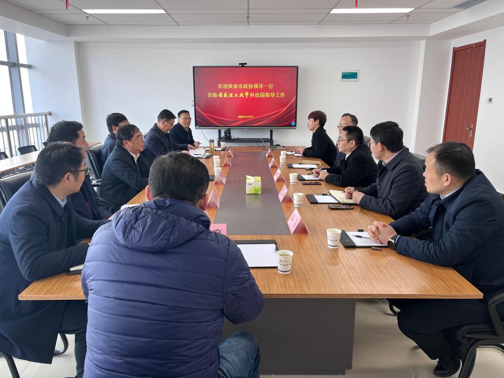 3月7日上午,淮南市政协党组书记、主席蔡宜骅,市政协副主席董众兵,市政协秘书长吕习明一行赴我校大学科技园调研指导,校党委副书记、常务副校长余玉刚陪同调研。