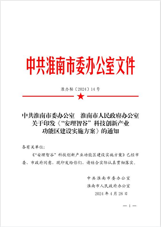 4月28日,淮南市委办公室 淮南市人民政府办公室正式印发《“安理智谷”科技创新产业功能区建设实施方案》(详见附件)。“安理智谷”将充分发挥安徽理工大学等高校院所的校友资源、品牌效应,以科技体制创新为引领,建成全省创新资源最密、创新活力最强、体制机制最活、创新创业环境最优的创新中心之一,推动成为在全国具有重要影响力的科技创新策源地和新兴产业聚集地。