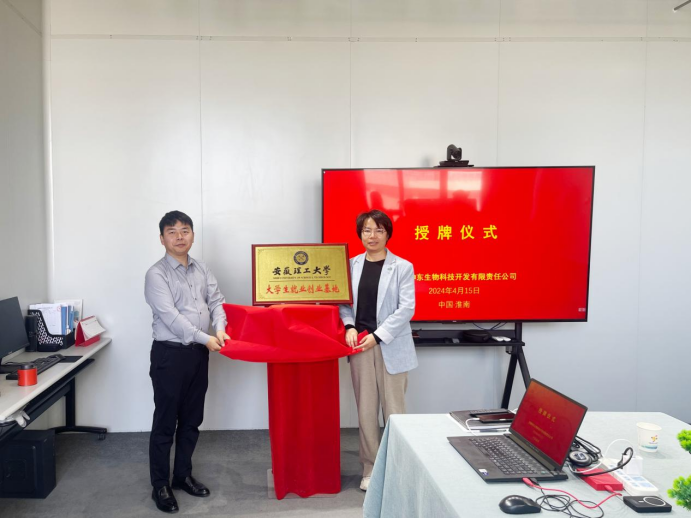 4月15日上午,安徽理工大学医学院与大学科技园内安徽神东生物科技开发有限责任公司共建大学生就业创业基地授牌仪式成功举行。医学院党委书记及副院长出席活动。